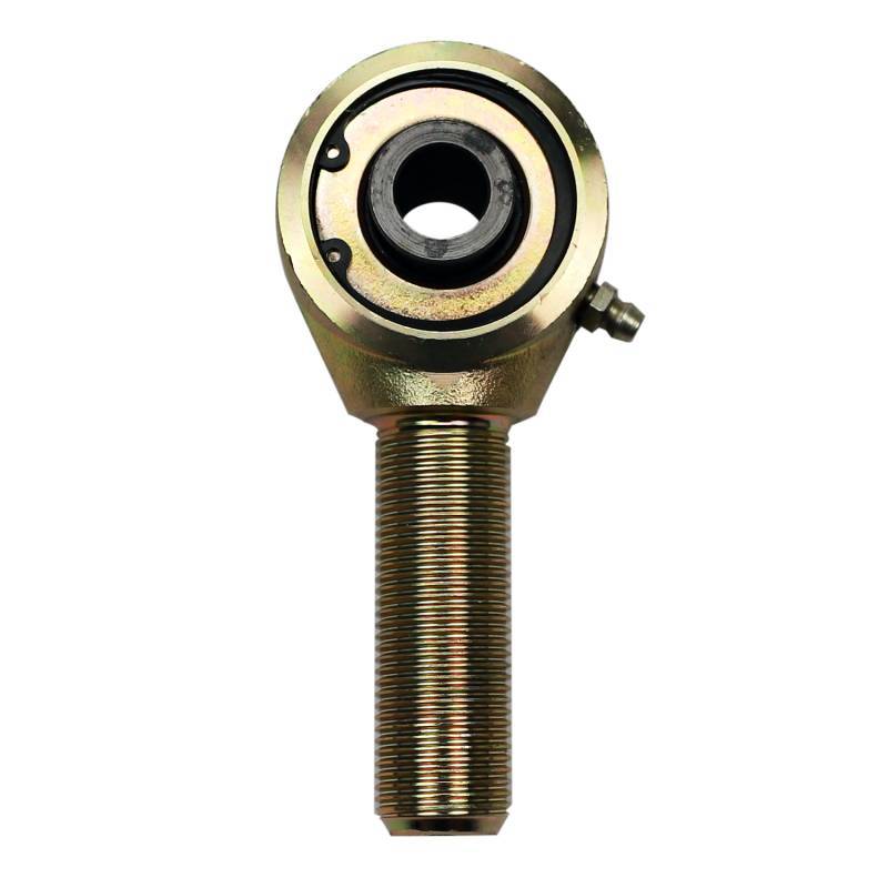 RockJock's narrow forged Johnny Joints® for fabricators and suspension system builders offer 40 degrees of unrestricted movement in any direction as compared to 22 degrees on a common heim joint! Johnny Joint® rod ends offer cushioning that a heim joint cannot provide via high-density urethane bushing that encases the inner ball. The heat treated center balls are cross-drilled for thru-bolt lubrication and the joint internals are retained with 2 heavy duty, heat treated side washers and a snap ring. This specific joint is a 2" diameter, fitted with a zerk fitting for greasing, 2 1/4" of 7/8"-14 right hand threads on the shank, and a 1.600" mounting width ball with a .562" thru bolt hole. Finished in gold zinc plating.