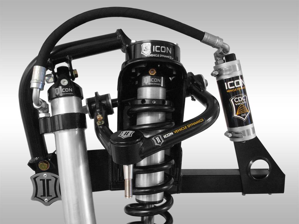 ICON Vehicle Dynamics tubular upper control arms do an exceptional job of adding strength and performance to your truck while also correcting suspension geometry and reducing OE balljoint bind in lifted applications. The 1" PTFE-lined stainless steel uniball that can be found in ICON upper control arms is a high-quality component, but its location on the vehicle leaves it vulnerable to all of the elements you may drive through including dirt, water, sand, road salts, etc. Always looking to make good things even better, ICON engineers took the uniball cap concept featured in our Billet Upper Control Arms and arrived at the easy-to-install and affordable solution that is the ICON Uniball Cover Cap Kit. These 6061 billet aluminum caps were designed exclusively for ICON tubular upper control arms and feature extremely durable 3M neoprene adhesive rings that attach them to the uniball cup. While our caps don't make our arms invincible to normal wear, they do a great job of extending the service life of the uniball by keeping the elements out that are usually attributed to premature PTFE-liner failure. The kit includes one pair of caps and two pairs of adhesive rings so that uniballs may be serviced regularly. Whether you are an avid off-roader looking to keep your vehicle in top working order, or you just want to increase the cosmetics of your inner fender well, this is the perfect add-on for you.