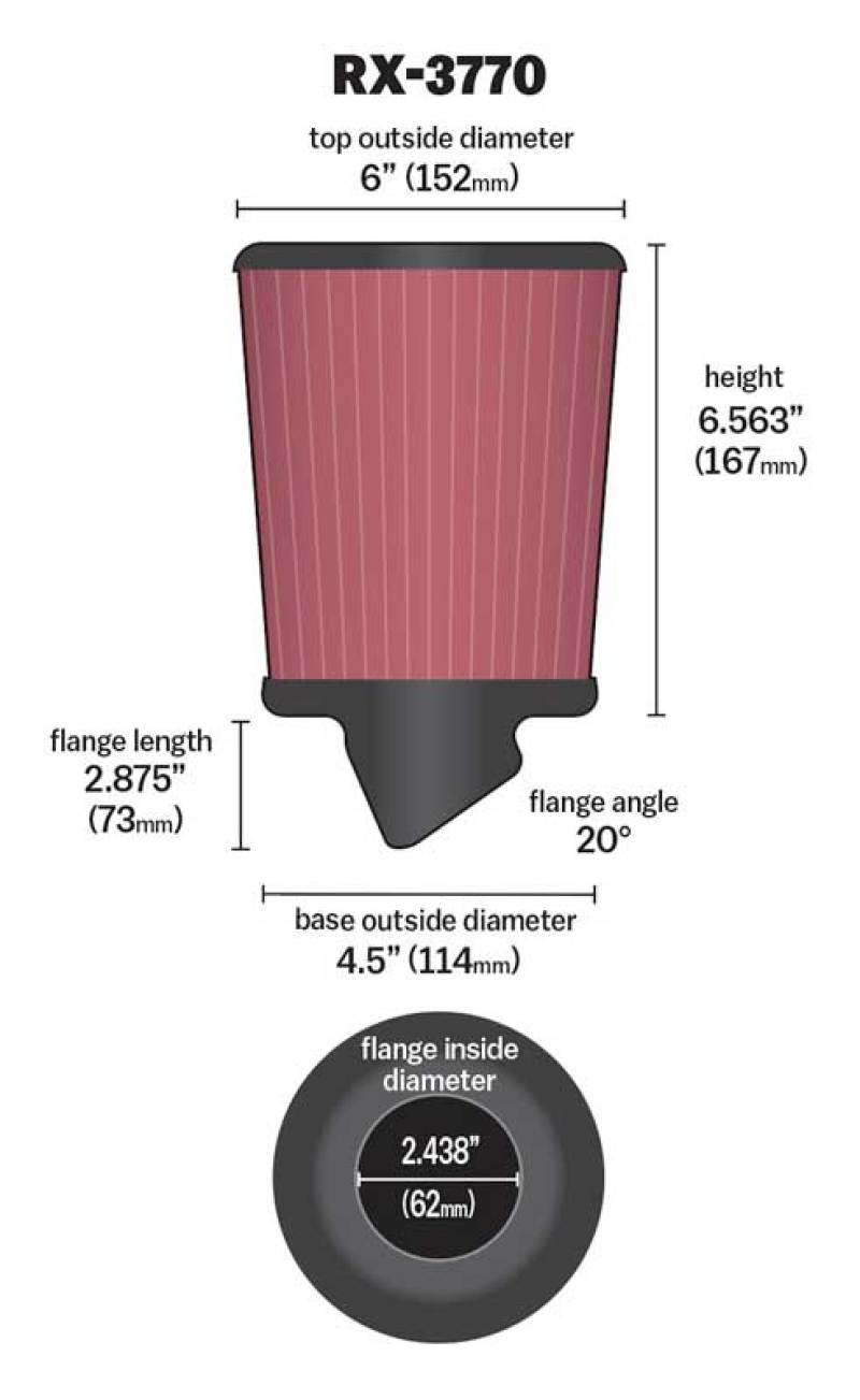 K&N Engineering Filter Universal X Stream Clamp-On 3in Flange 4.5in Base 6in Top 6.125in Height - RX-3770