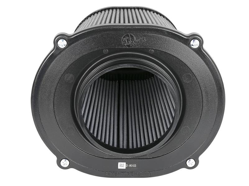 Quantum Pro DRY S air filter by aFe Power is specifically designed for the Quantum Series cold air intake systems and feature an injection molded base and top for lighter weight and rigidity. The newly designed base includes a built-in, 3-angle velocity stack for smooth, even airflow. The Quantum Pro DRY S filter is a 360-degree radial flow air filter with oil-free, 3-layer progressively finer porosity synthetic media for optimum flow, filtration and convenience. Captive screws are included to eliminate lost hardware and to securely fasten to the Quantum Intake system housing.