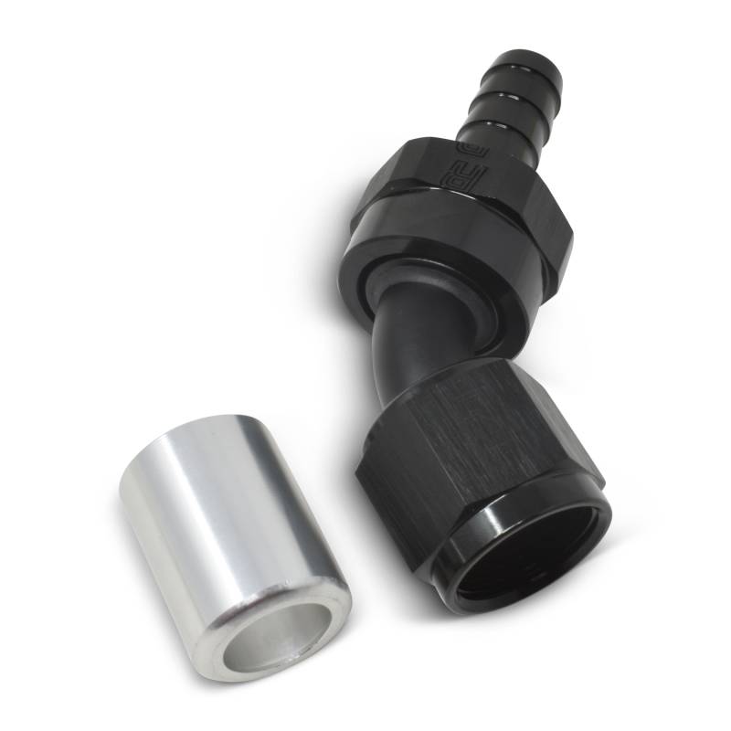 Pro Classic 45 Deg. Crimp On Hose End Black/Silver -6AN