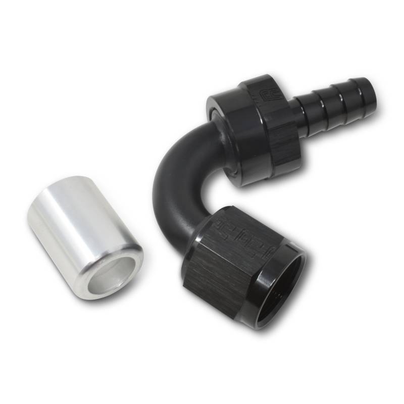Pro Classic Crimp On 120 Deg. Tight Radius Hose End Black/Silver -6AN