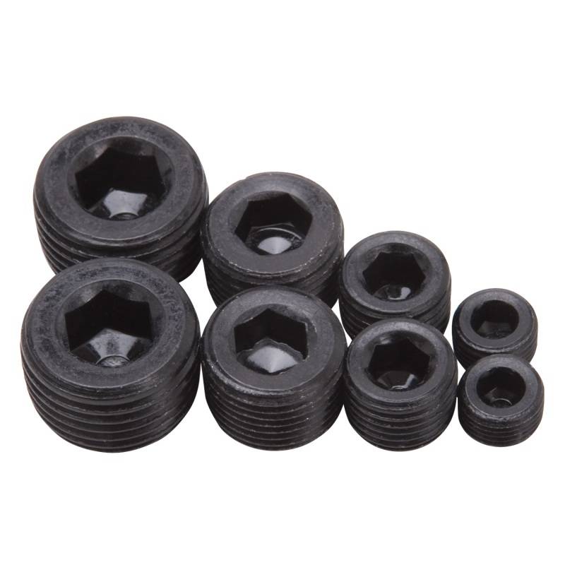 Fittings Pipe Plug Kit Internal Allen Head 1/8in. 1/4in. 3/8in. 1/2in. NPT Set of 8 Black