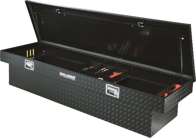 Strength, functionality and great looks, for professional quality are yours with the ChallengerTM line of storages boxes. Each box features twin commercial gas struts that lift lid automatically for easy, one-handed use; lockable, quick-release stainless handles and patent pending structured foam filled lids that can stand up to even the most challenging loads. Seams are hand wielded for durability and strength and lids are bolted on to box body using a single heavy duty aluminum, piano style hinge for years of reliable service. Rust resistant black powder coated finish is electro-statically applied for maximum protection against wear and harsh weather conditions.